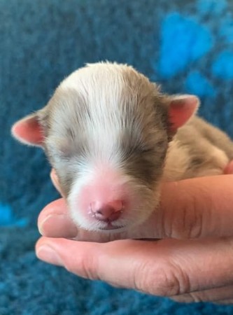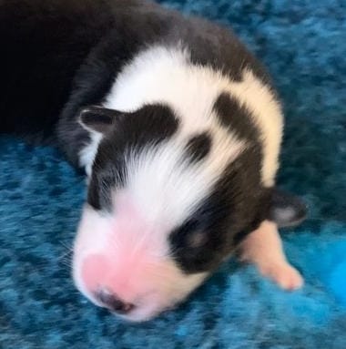 E-Wurf Am 6.03.2022 ist unser E-Wurf geboren. Mutter: Caribic vom Affinger Bach Vater: Booby Dazzler from Dangerous Dream Welpe 1: Rüde Elvin (blue-merle, 115 g)